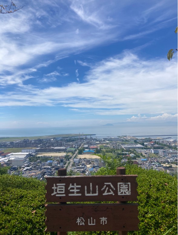 到着すると、まず目に飛び込んでくるのが「垣生山公園 松山市」と書かれた木の看板。ここから見える青空と町並みのコントラストは、思わず深呼吸したくなるような開放感があります。